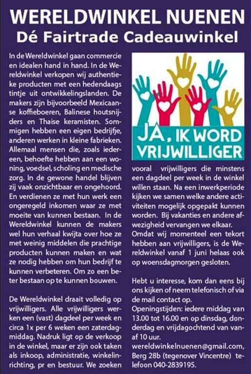Vacatures bij Wereldwinkel Nuenen